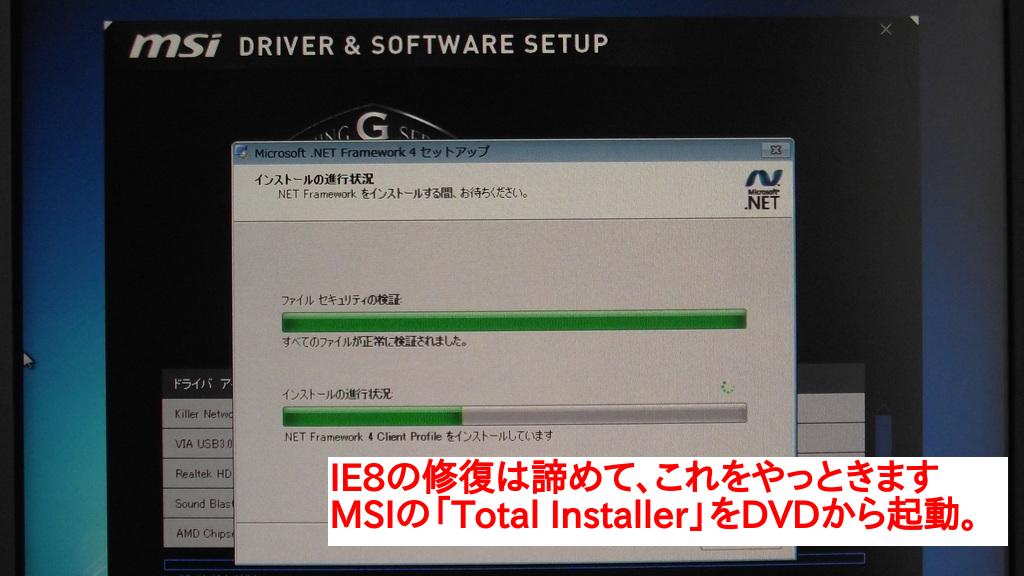 諦めて、MSIのWindows用の[Total Installa]をDVDから起動そしてドライバーを全てインストールで思わぬ事が。勝手にネットワーク接族がOKに・・・笑い。